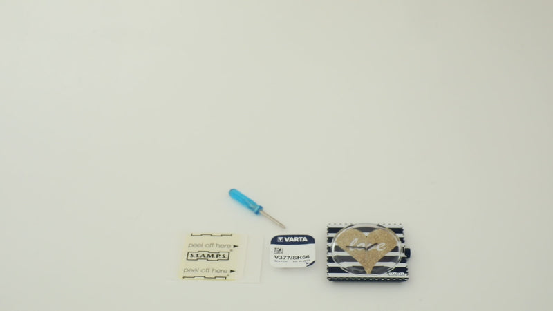 Der Batteriewechsel eurer STAMPS Uhr ist einfach und schnell gemacht. Mit unserem First-Aid-Kit – inklusive Sticker, Metallstift und Batterie – könnt ihr ihn ganz leicht selbst durchführen. Wenn ihr euch unsicher seid, lasst den Wechsel einfach beim Juwelier machen.